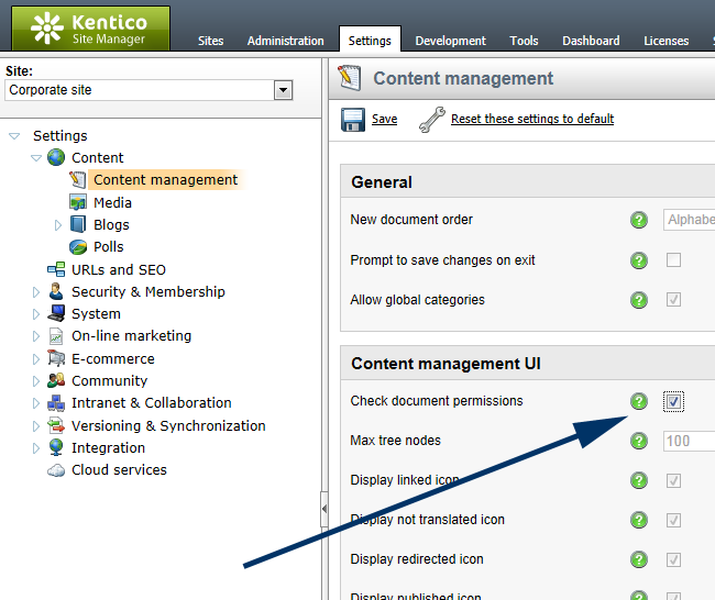 "If enabled, only documents for which the current user has the Read permission are displayed in the content tree (in CMS Desk -> Content, in document listings and in various dialogs where the content tree is displayed)."